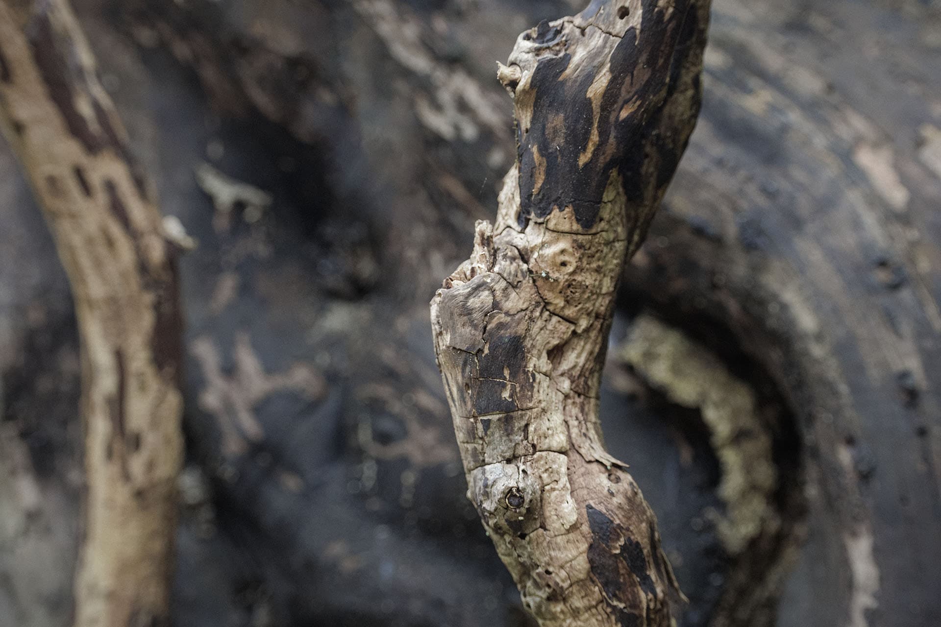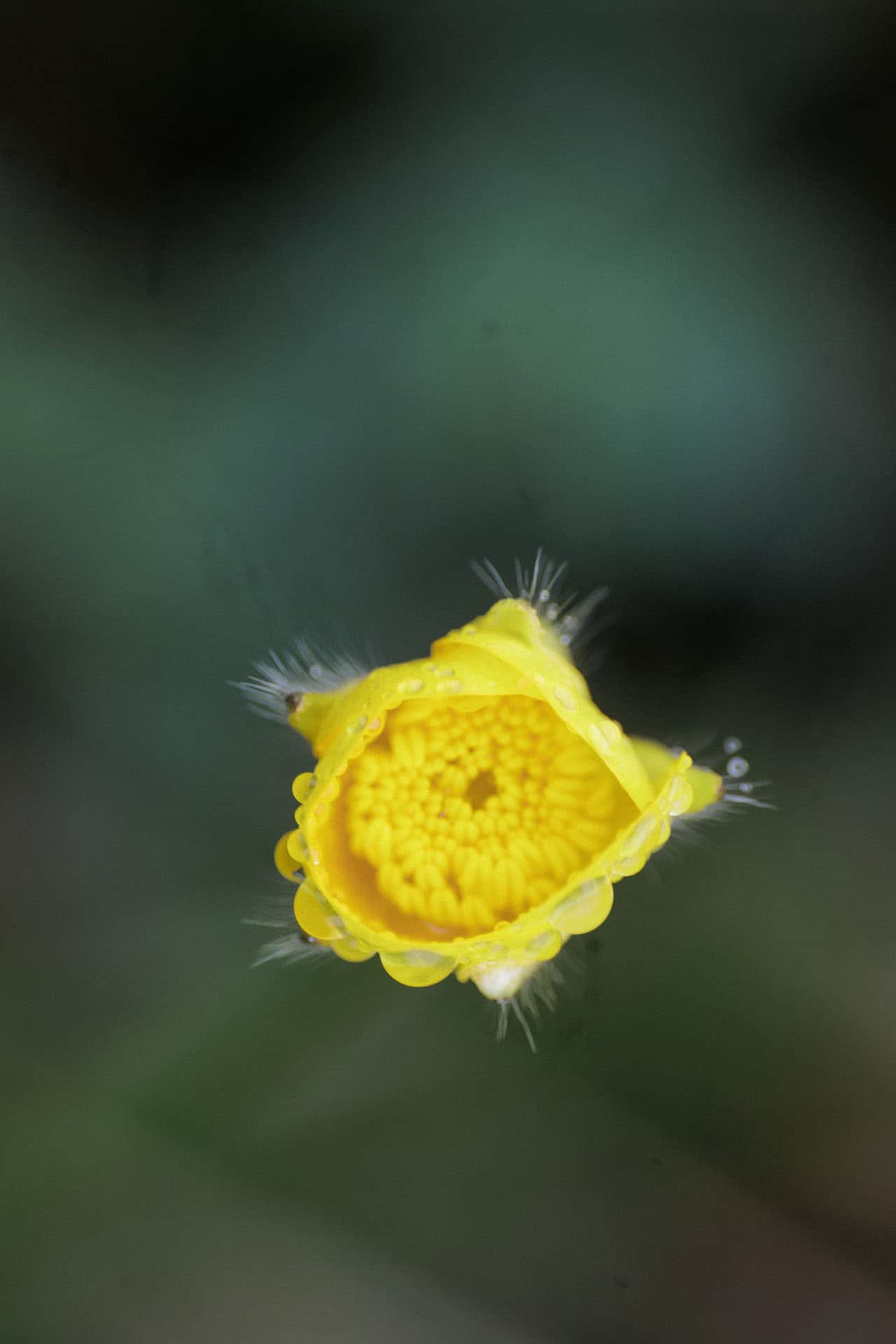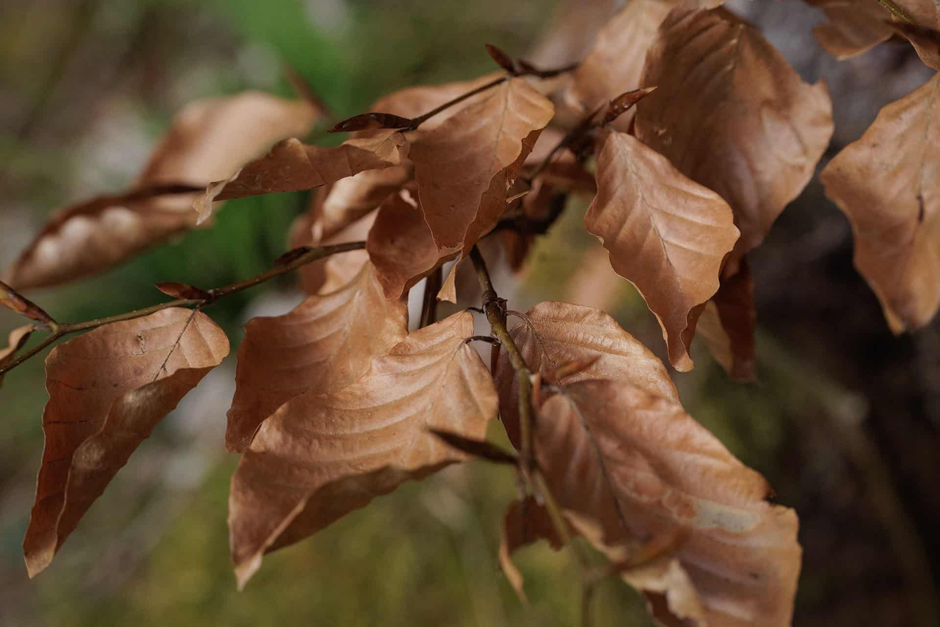Chaque matin, avant les offices ou après, la forêt entourant l'abbaye offrait un autre silence — celui du sol, des tiges, des premiers pétales. Le 100 mm macro révèle ce que l'œil nu effleure sans s'y arrêter : la géométrie d'une alchémille chargée de rosée, les galeries creusées par les insectes dans le bois mort, la couleur exacte d'un bouton de renoncule avant l'ouverture, la marcescence du hêtre qui retient ses feuilles mortes pendant que les bourgeons s'apprêtent à les pousser dehors. Des images prises à genoux, dans l'humidité du matin des Bauges.