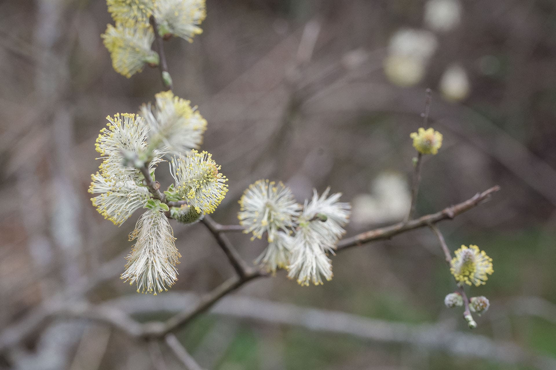 Espèces photographiées — alchémille commune · renoncule bouton-d'or · cognassier du Japon · marguerite en bourgeon · luzule des bois · lamier maculé · tussilage en aigrette · noisetier · ronce · violette sauvage · bois mort aux galeries de scolytes · mousse sur pierre et sur tronc · hêtre en marcescence